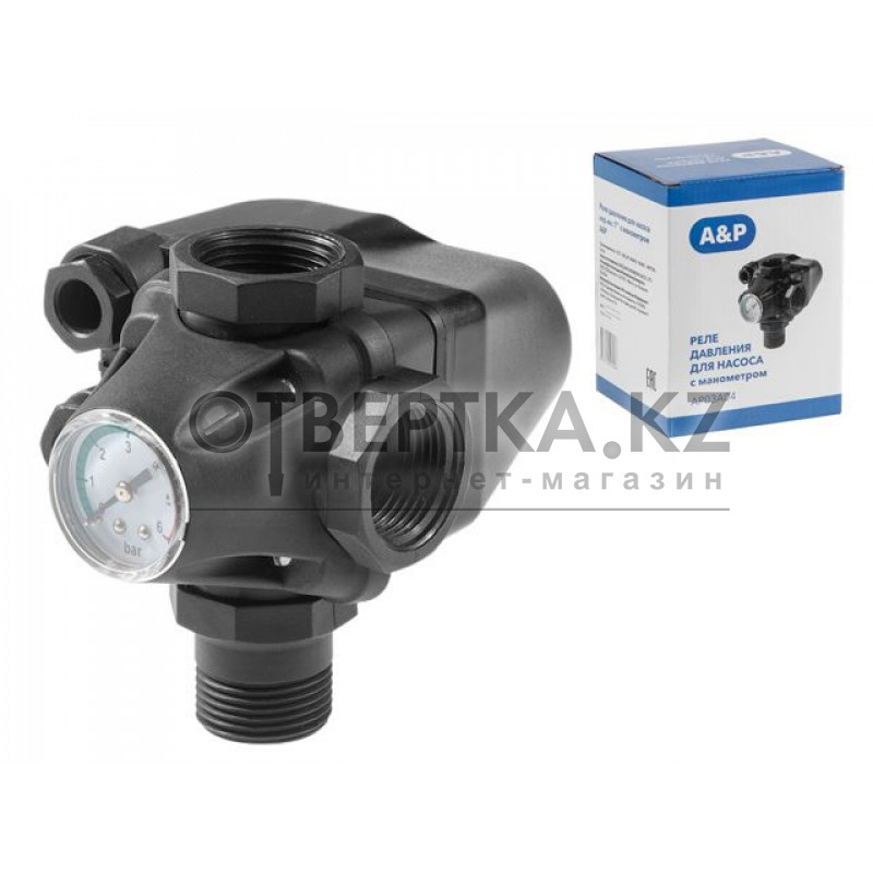 Реле давления состоит из корпуса, внутри которого расположена нормально замкнутая контактная группа, управляемая мембраной, соединенной с напорной магистралью. Реле включает насос, когда давление в системе падает ниже установленного значения и выключает насос, когда давление в системе достигает установленного значения выключения.