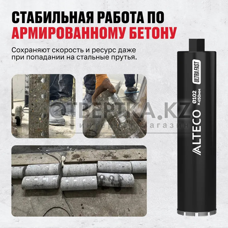 Высокоскоростные для интенсивного бурения. Бурит высокоармированный бетон в 2 раза быстрее, чем ALTECO Pro.