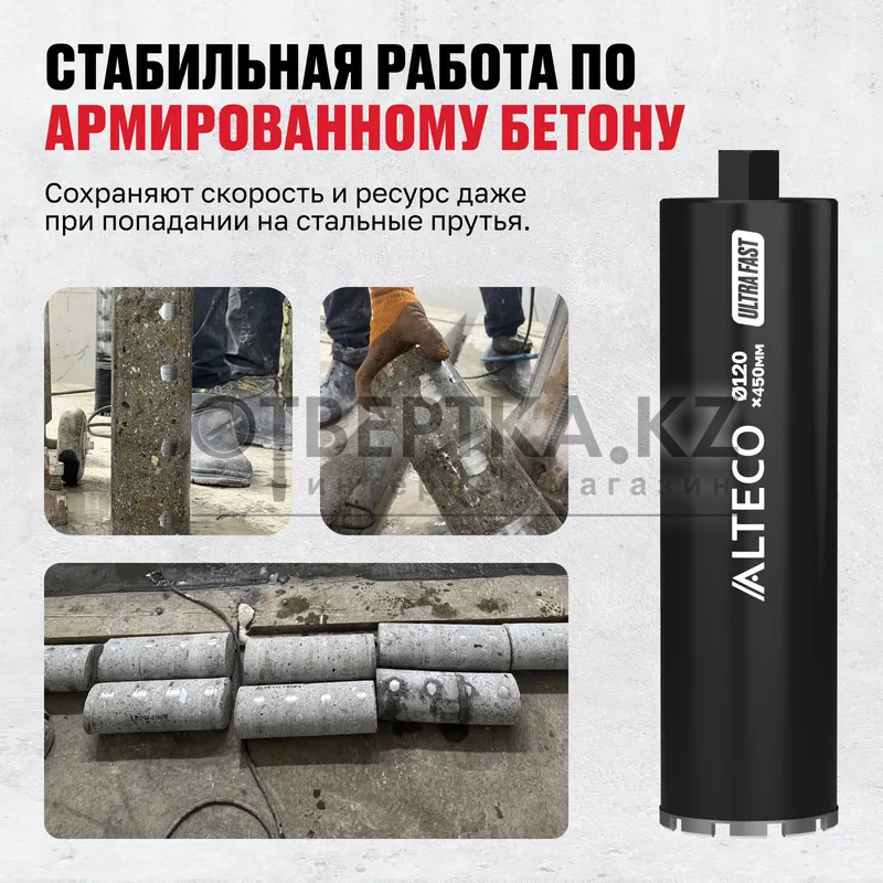 Высокоскоростные для интенсивного бурения. Бурит высокоармированный бетон в 2 раза быстрее, чем ALTECO Pro.
