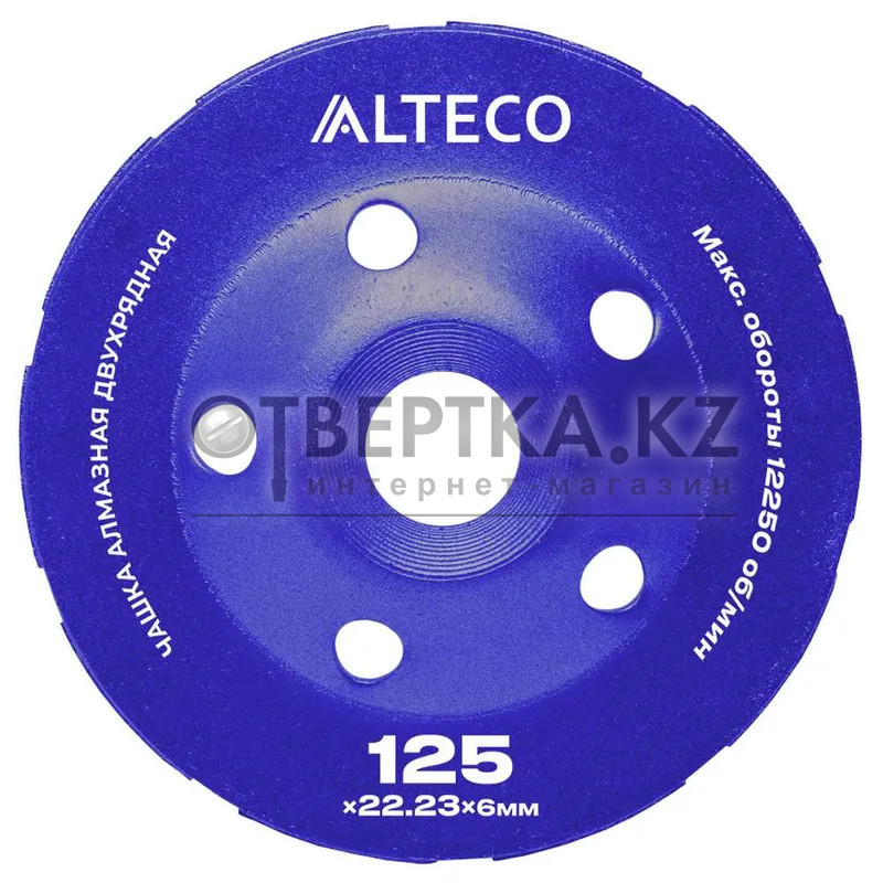 Чашка алмазная двухрядная ALTECO 125x22.23x6мм - предназначена для угловых шлифовальных машин. Применяется для зачистки, выравнивания, снятия краски и шлифования поверхностей из мрамора, камня, гранита и бетона. Отличается высокой производительностью, длительным рабочим ресурсом, не требует водяного охлаждения во время работ.