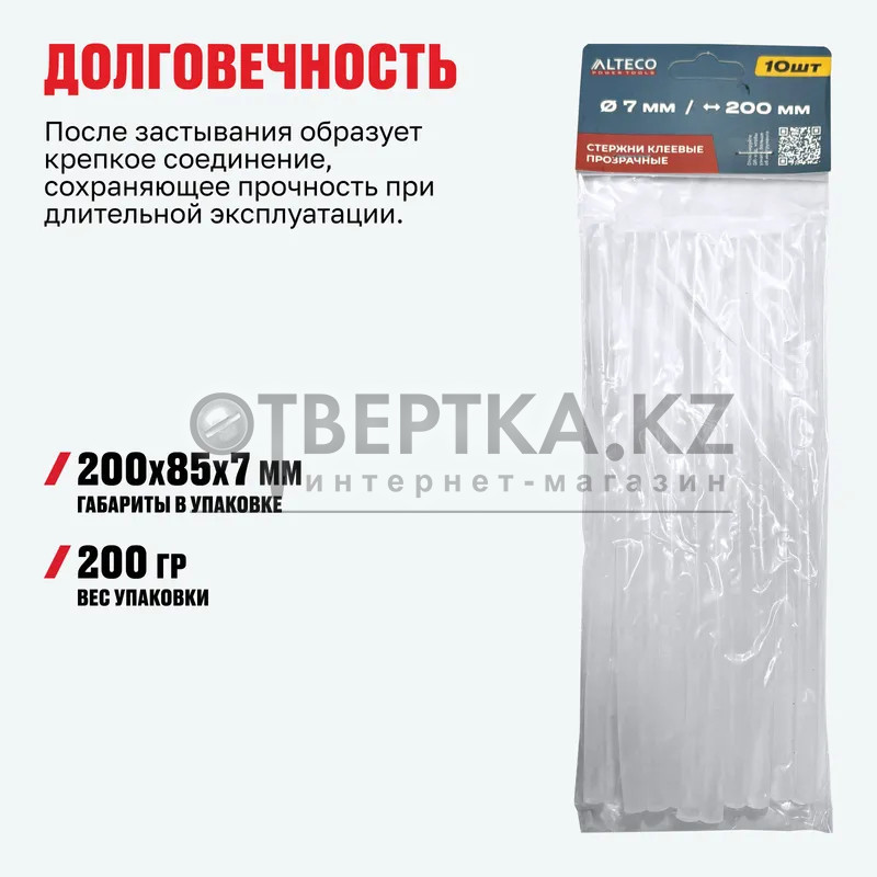 Стержни клеевые прозрачные ALTECO - подходят для склеивания дерева, пластика, бумаги, стекла, кожи, керамики и других материалов. Обеспечивают прочное и долговечное соединение, удобны для ремонта, упаковки, декора и рукоделия.