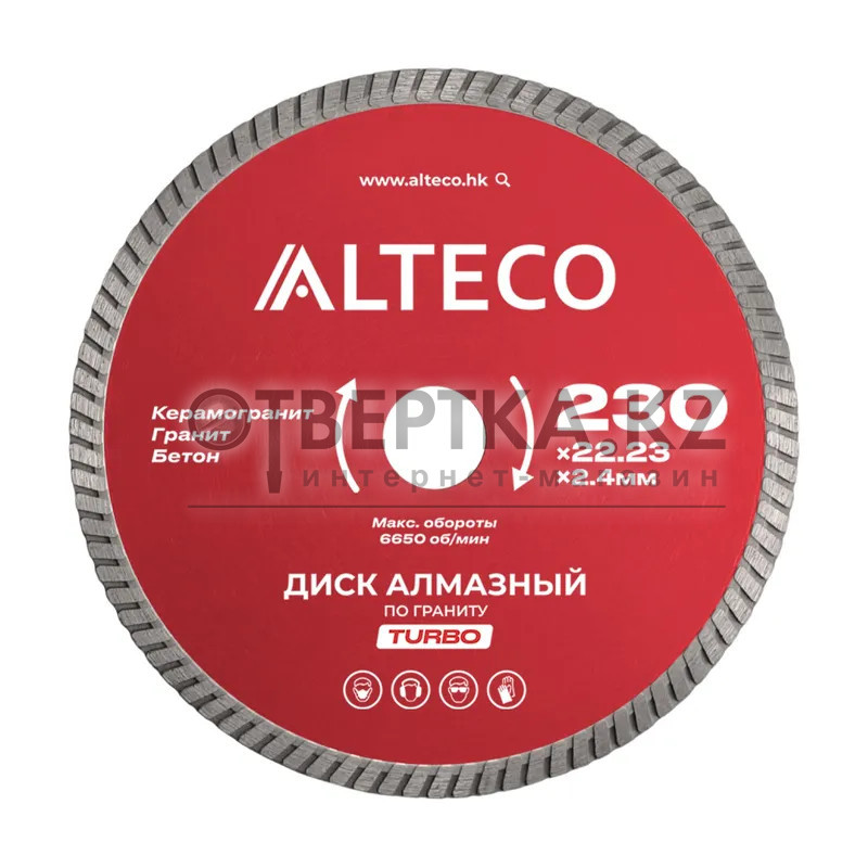 Диск алмазный по граниту ALTECO TURBO 230x22.23x2.4 мм - применяется для сухого реза по граниту. Толщина алмазного сегмента - 2.4 мм.