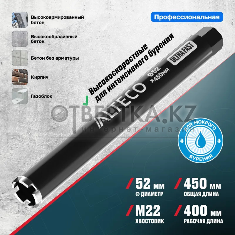 Высокоскоростные для интенсивного бурения. Бурит высокоармированный бетон в 2 раза быстрее, чем ALTECO Pro.