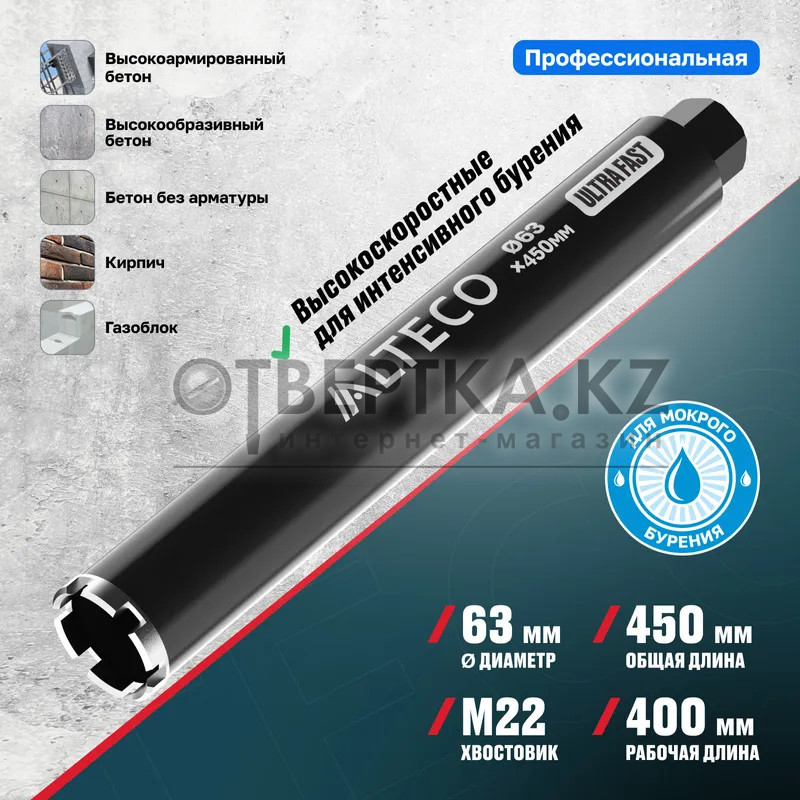 Высокоскоростные для интенсивного бурения. Бурит высокоармированный бетон в 2 раза быстрее, чем ALTECO Pro.