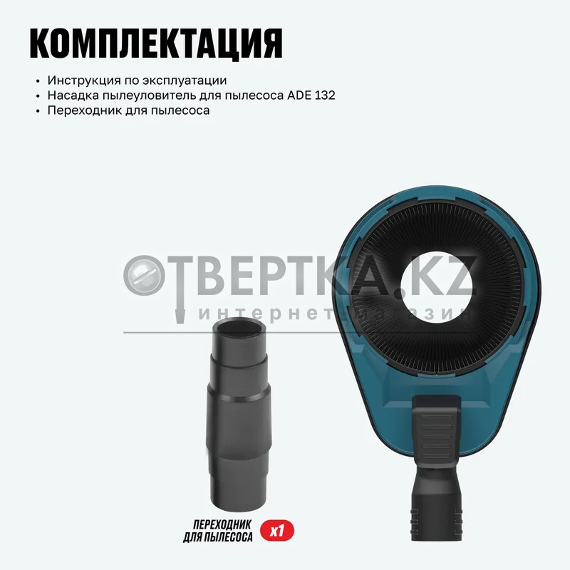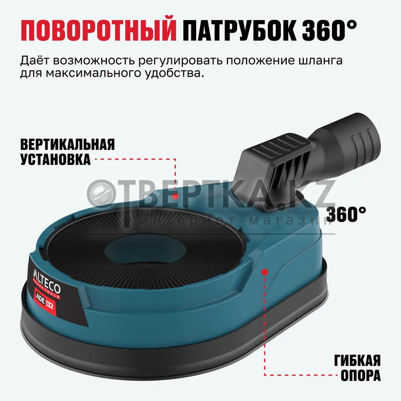 Насадка пылеуловитель для пылесоса ALTECO ADE 132 подходит для работы с любыми инструментами, предназначенными для сверления или бурения. Она не требует крепления на инструмент – насадка подключается напрямую к пылесосу и фиксируется на стене за счёт вакуума, исключая необходимость в дополнительном утяжелении.