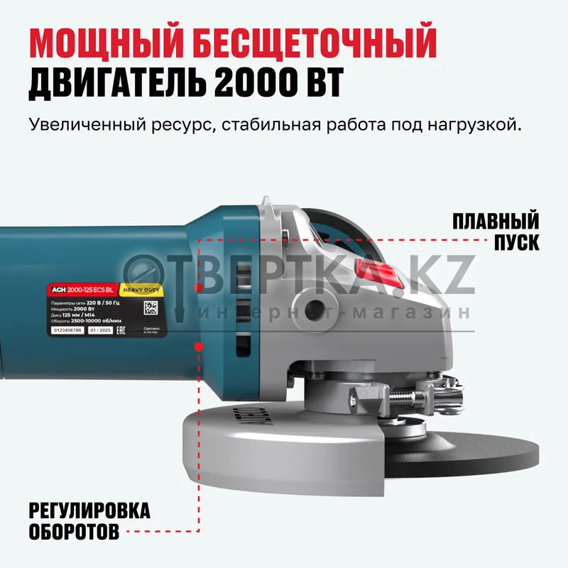 Бесщеточная угловая шлифмашина ALTECO Heavy Duty AGH 2000-125 ECS BL - разработана для профессиональной резки, шлифовки и зачистки твердых материалов в условиях интенсивной эксплуатации. Оснащенная мощным бесщеточным двигателем на 2000 Вт, диском диаметром 125 мм и скоростью вращения до 10000 об/мин, она обеспечивает стабильную производительность даже при выполнении самых требовательных задач. ALTECO AGH 2000-125 ECS BL — надежный инструмент Heavy Duty-серии, уверенно справляющийся с максимальными нагрузками и предназначенный для самых тяжелых видов работ.