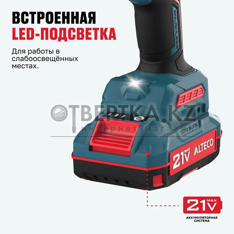 - Часть единой аккумуляторной системы ALTECO 21Vmax — один аккумулятор подходит для всех инструментов этой серии, обеспечивая удобство, экономию и гибкость в работе.