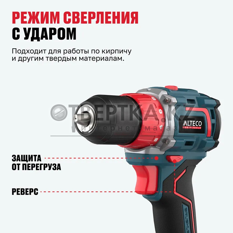 Бесщеточная аккумуляторная дрель-шуруповерт ALTECO CD 21-60 BL - ультракомпактный и легкий с мощным бесщеточным двигателем для профессионалов. Благодаря бесщеточному двигателю и крутящему моменту до 60 Нм он легко справляется с крепежом в твердых материалах, а эргономичный дизайн и легкий корпус обеспечивают комфорт даже при длительной работе. Инструмент оснащен LED-подсветкой, двумя скоростями, а совместимость с аккумуляторной системой ALTECO 21Vmax делает его универсальным решением для любых задач. В комплекте – все необходимое для старта, включая биты и удобный кейс.