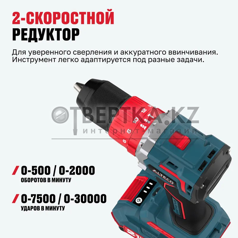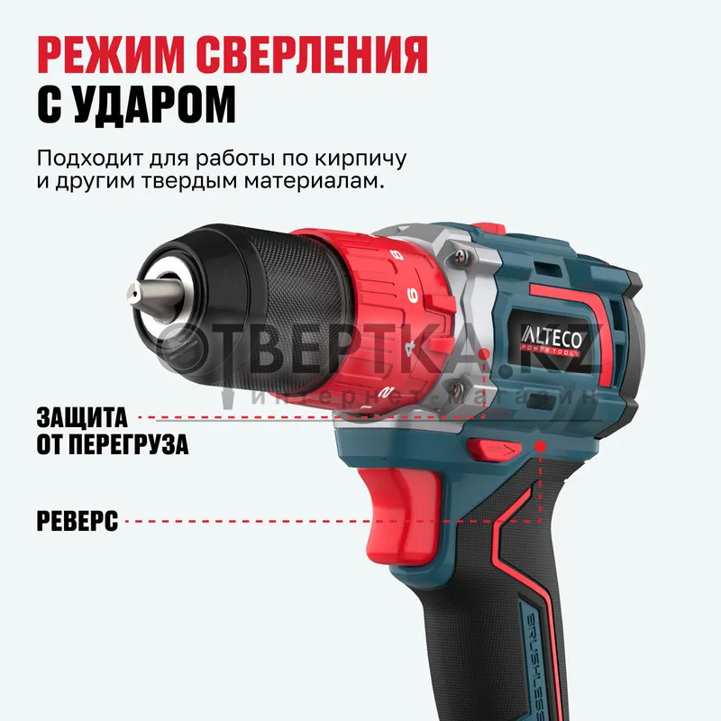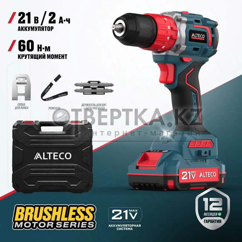 Бесщеточная аккумуляторная ударная дрель-шуруповерт ALTECO CID 21-60 BL - ультракомпактный и легкий с мощным бесщеточным двигателем для профессионалов. Благодаря бесщеточному двигателю и крутящему моменту до 60 Нм он легко справляется с крепежом в твердых материалах, а эргономичный дизайн и легкий корпус обеспечивают комфорт даже при длительной работе. Инструмент оснащен LED-подсветкой, двумя скоростями и ударным режимом, а совместимость с аккумуляторной системой ALTECO 21Vmax делает его универсальным решением для любых задач. В комплекте – все необходимое для старта, включая биты и удобный кейс.