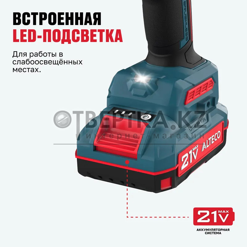 - Часть единой аккумуляторной системы ALTECO 21Vmax — один аккумулятор подходит для всех инструментов этой серии, обеспечивая удобство, экономию и гибкость в работе.