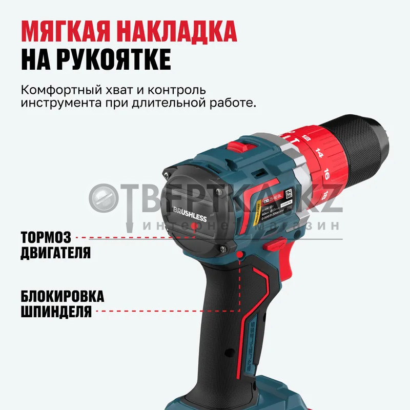 - Бесщеточный и мощный двигатель — увеличенный ресурс, стабильная работа под нагрузкой.