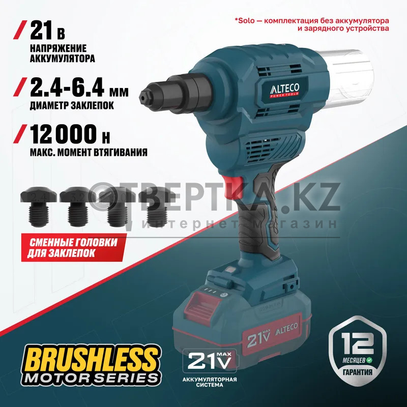 Бесщеточный аккумуляторный заклепочник ALTECO CRG 20-6 Li BL Solo (без АКБ И ЗУ)