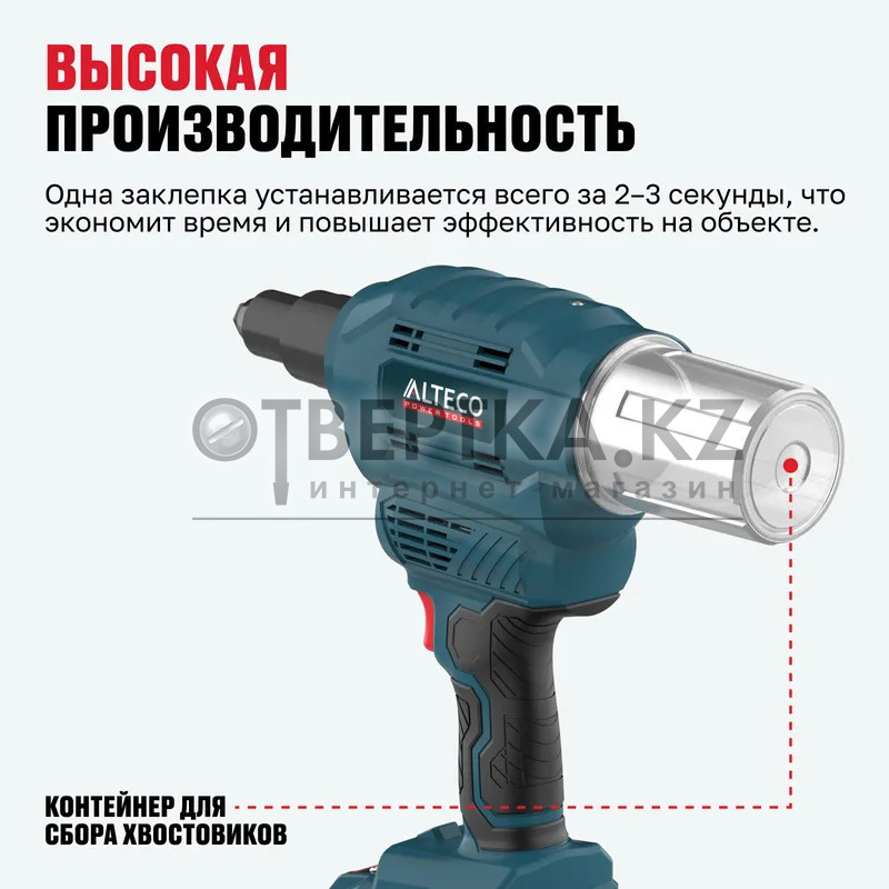• Высокая производительность — одна заклепка устанавливается всего за 2–3 секунды, что экономит время и повышает эффективность на объекте.