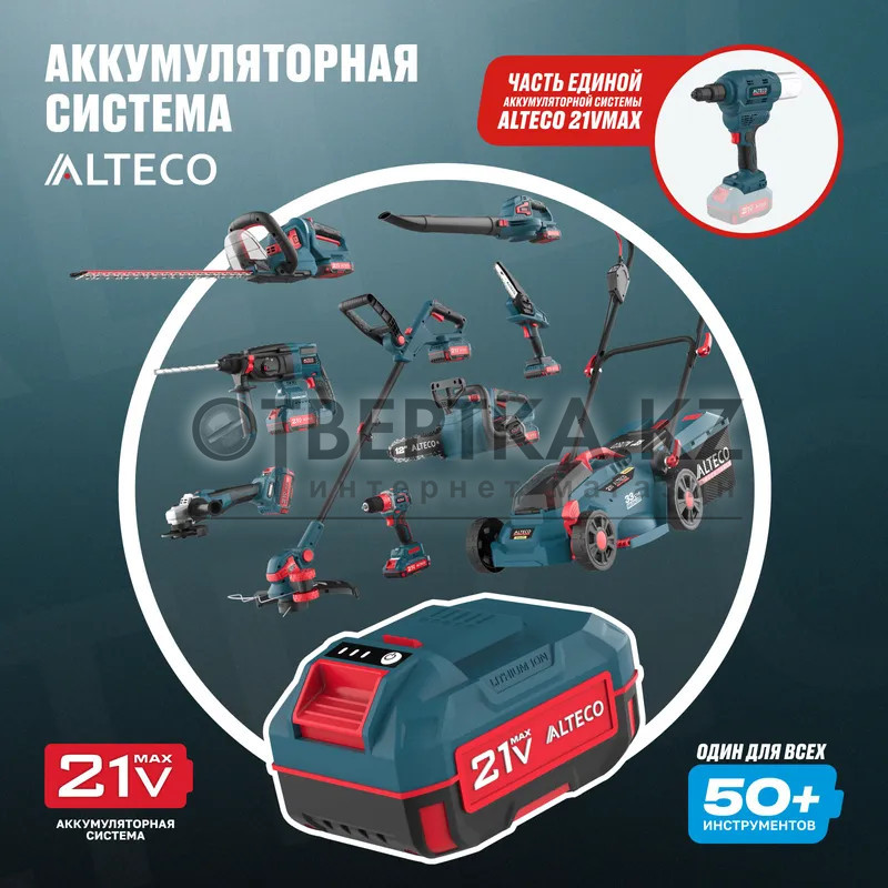 • Часть единой аккумуляторной системы ALTECO 21Vmax — один аккумулятор подходит для всех инструментов этой серии, обеспечивая удобство, экономию и гибкость в работе.