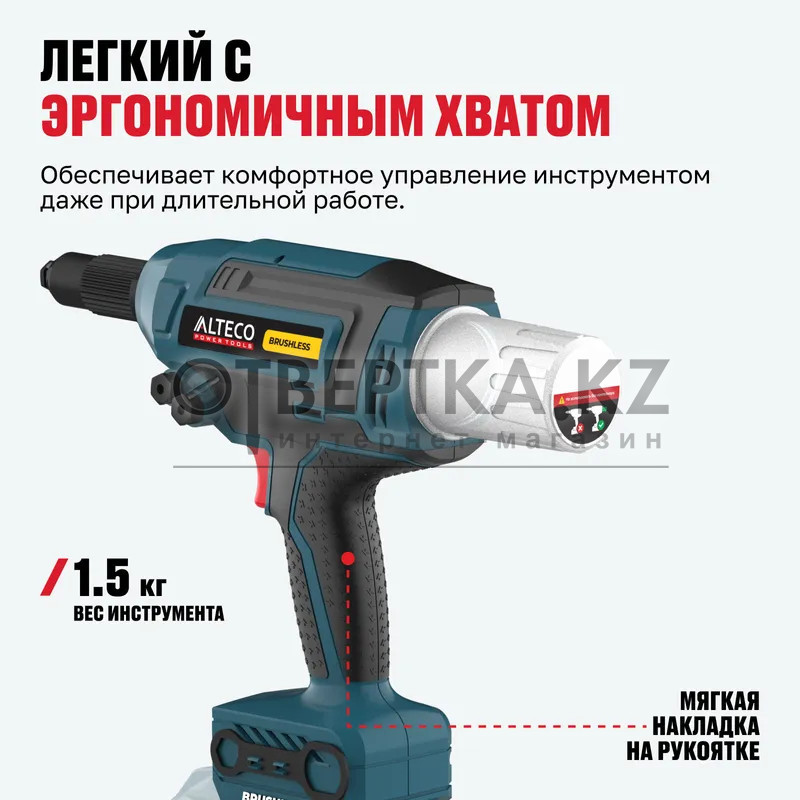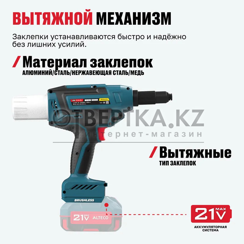 Бесщеточный аккумуляторный заклепочник ALTECO CRG 21-64 BL Solo предназначен для быстрой и надежной установки заклепок без усилий и ограничений в движении. Заклепочник сочетает высокую мощность с компактностью и автономностью, позволяя работать в самых труднодоступных местах. Бесщеточный двигатель обеспечивает долгий срок службы и стабильную производительность.
