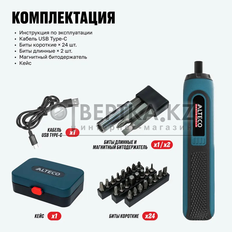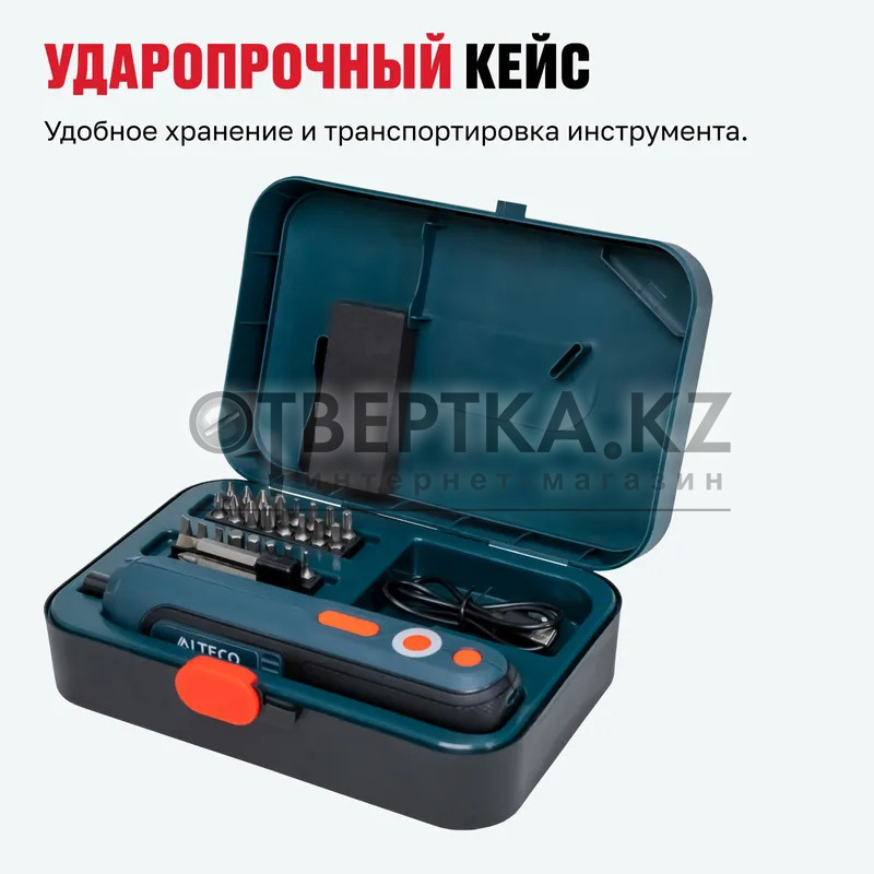 Аккумуляторная отвертка прямая ALTECO CSD 4V T - предназначена для быстрой и удобной работы с мелким крепежом — сборки мебели, монтажа бытовых элементов и мелкого ремонта. Компактный корпус и регулировка крутящего момента делают ее удобной для точных и аккуратных работ. LED-подсветка обеспечивает отличную видимость, а комплект из 26 бит, битодержателя и кейс — все, что нужно для эффективной работы в одном наборе. Идеальное решение для дома, офиса и выездных задач.
