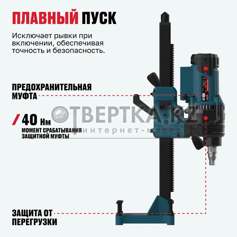 - Усиленный крутящий момент — обеспечивает стабильное бурение твердых оснований без потери мощности.
