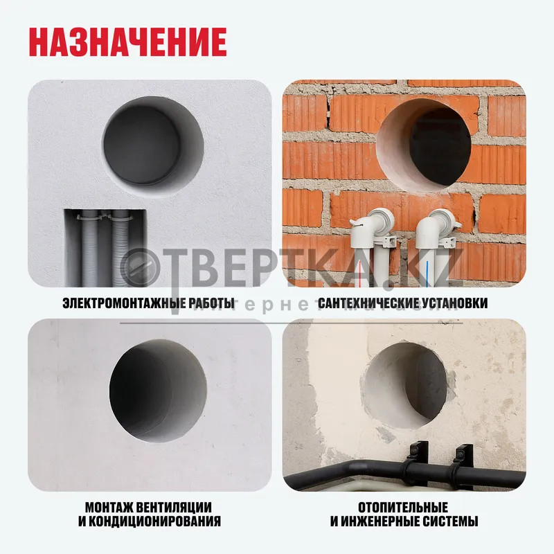- Диаметр коронки до 300 мм — позволяет выполнять широкий спектр профессиональных задач.
