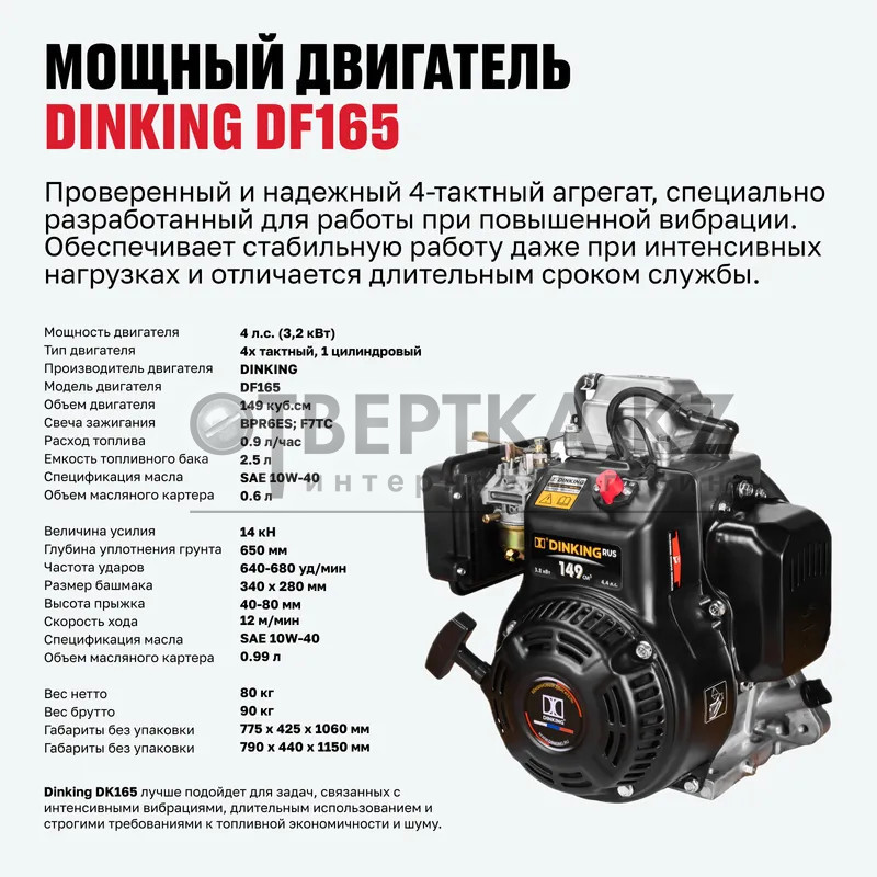- Мощный двигатель DINKING DF165 - проверенный и надежный 4-тактный агрегат, специально разработанный для работы при повышенной вибрации. Обеспечивает стабильную работу даже при интенсивных нагрузках и отличается длительным сроком службы.