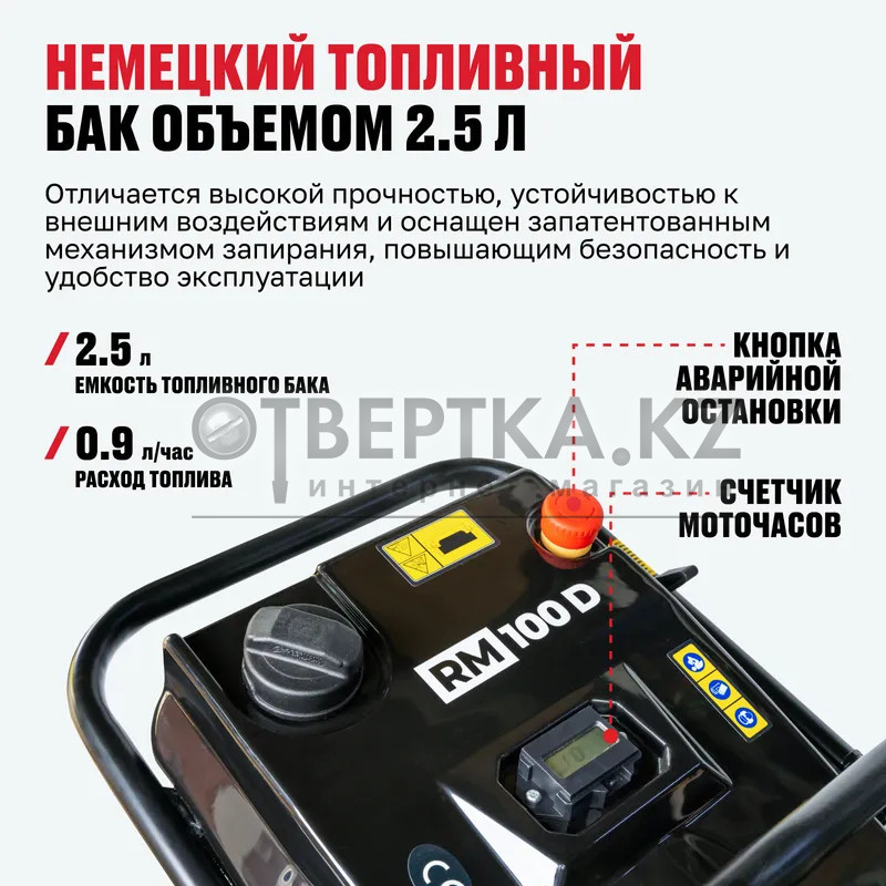 - Кнопка аварийной остановки - для мгновенного отключения двигателя в экстренных ситуациях, обеспечивая безопасность оператора.