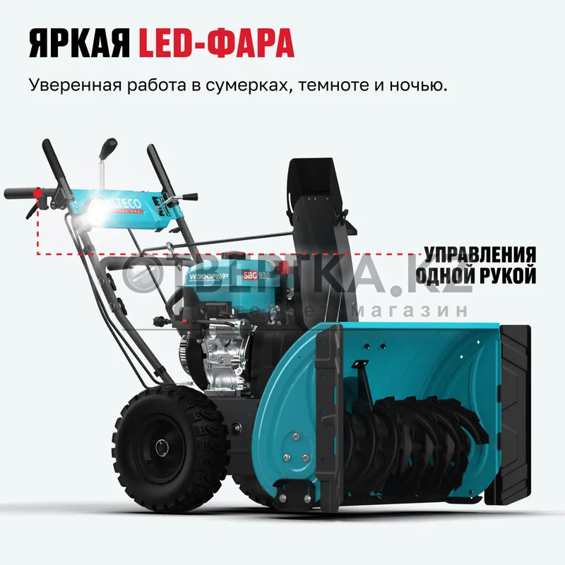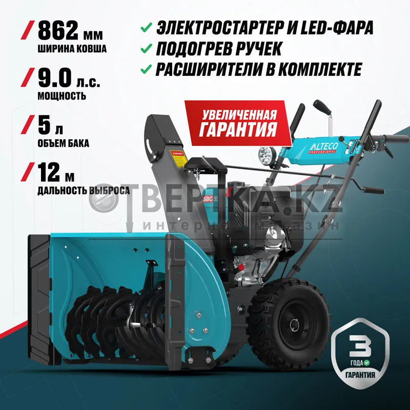Бензиновая снегоуборочная машина ALTECO SBG 930 – профессиональная техника для эффективной уборки снега в жилых, коммерческих и промышленных зонах. Мощный двигатель 6,3 кВт (9 л.с.) обеспечивает стабильную производительность даже при интенсивных снегопадах и в условиях плотного укатанного снега. Рабочая ширина захвата 862 мм и высота обработки до 540 мм позволяют быстро очищать большие территории, сокращая время работы. В комплект входит расширители ковша 100 мм, которые увеличивают функциональные возможности машины и делает ее использование еще более удобным, что делает SBG 930 оптимальным выбором для профессиональной эксплуатации.