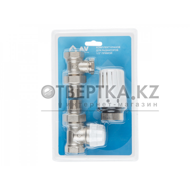 Комплект кранов прямой 1/2" для радиатора с термоголовкой, AV Engineering (инд. упак.) AVE144212