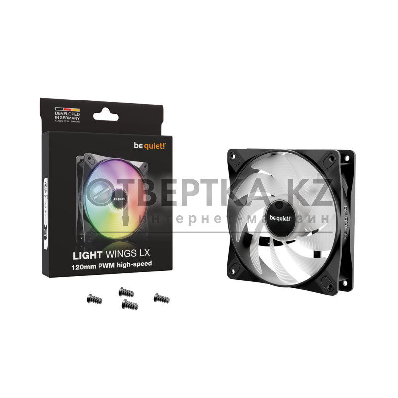 Вентилятор для компьютерного корпуса Bequiet! Light Wings LX 120mm PWM high-speed BL123 (Вентилятор для компьютерного корпуса, Bequiet!, Light Wings LX 120mm PWM high-speed, BL123, 120мм PWM high-speed, 2100 об/мин, 61.5/105.1 CFM, 30.5 dB(A), 4-pin PWM/3-pin ARGB, 120*120*25мм, Черный)