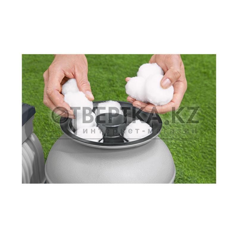 Придайте своему бассейну экологически чистый импульс! Фильтрующие шарики для бассейна Bestway® Polysphere™ – это высокоэффективный и экологически чистый способ поддерживать чистоту воды в наземном бассейне без лишних отходов. Фильтрующие шарики Polysphere являются многоразовой заменой песка в традиционных песочных фильтрах. Для получения фильтрующей способности 1 кг (2,2 фунта) песка требуется всего 28 г (0,06 фунта) фильтрующих шариков! Изготовленные из пригодного для вторичной переработки и нетоксичного материала, эти хлопкоподобные фильтрующие шарики могут прослужить 4-6 месяцев при надлежащем уходе. Просто поместите их во входящий в комплект сетчатый мешочек и легко промойте вручную для следующего использования. Кроме того, они повышают эффективность песочного насоса, требуя меньшего давления, что обеспечивает более высокую скорость потока и более длительный срок службы бассейна и фильтра для бассейна. Улучшите процедуру ухода за бассейном и попробуйте экологически чистое дополнение.