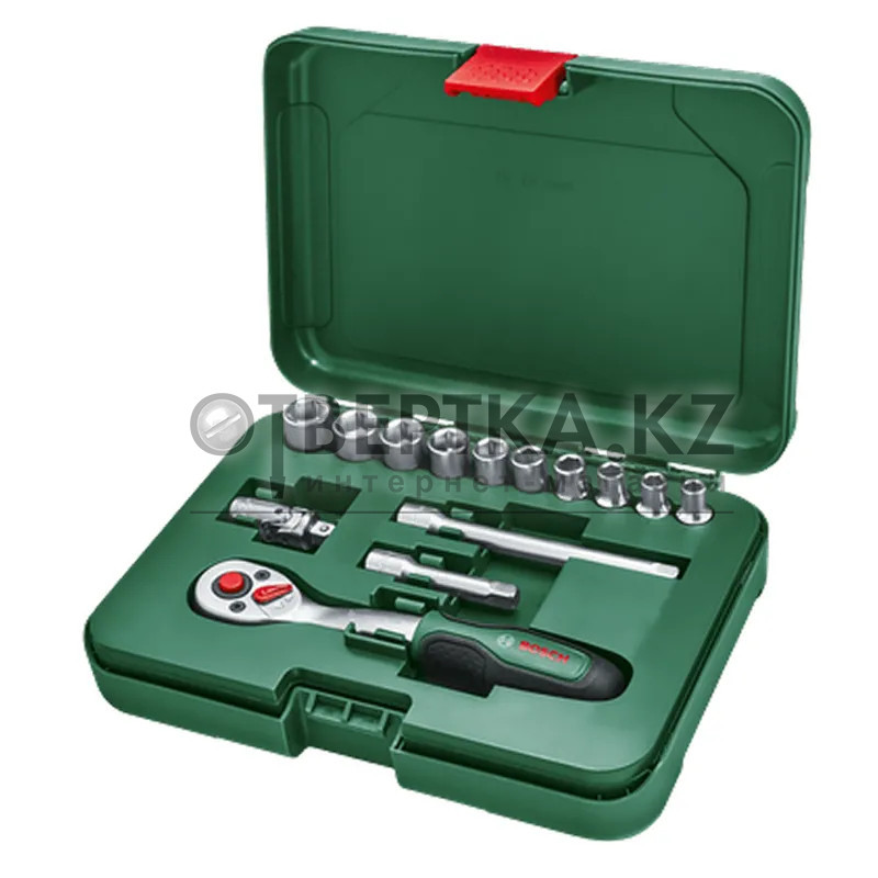 Набор торцевых головок 1/4", 14 предметов 1600A02BY0 - практичный помощник для механических и монтажных работ по дому. Набор состоит из трещотки на ¼ дюйма, адаптера, 10 торцевых головок и 2 удлинителей, которые помещены в удобный кейс для хранения. Трещотка развивает впечатляющий крутящий момент 74-93 Н·м, что на 20-50% превышает стандарт DIN, и может работать под углом 5° благодаря передаче с 72 зубьями. Трещотка имеет изогнутую эргономичную рукоятку с мягкой накладкой, что обеспечивает удобство и контроль при работе в труднодоступных местах.