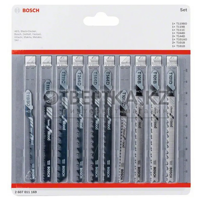 Набор пилок для лобзика Bosch 10шт. 2607011169 - используется для работ по древесине и материалам на ее основе с помощью электролобзика, предназначенных для выполнения различных видов работ.