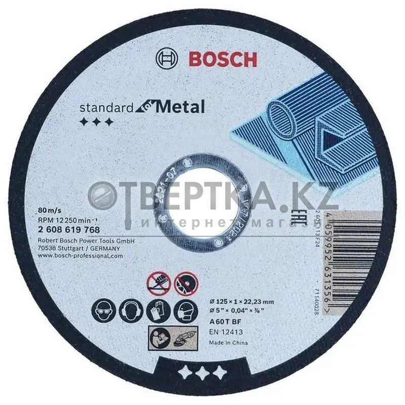 Диск отрезной по металлу Bosch 125x22.2х1.0мм 2608619768 - диск Standard for Metal из оксида алюминия специально разработан для широкого применения по металлу. Имеет посадочное отверстие 22,23 мм для угловых шлифовальных машин со стандартной стопорной гайкой. Соответствует самым высоким требованиям безопасности EN 12413.