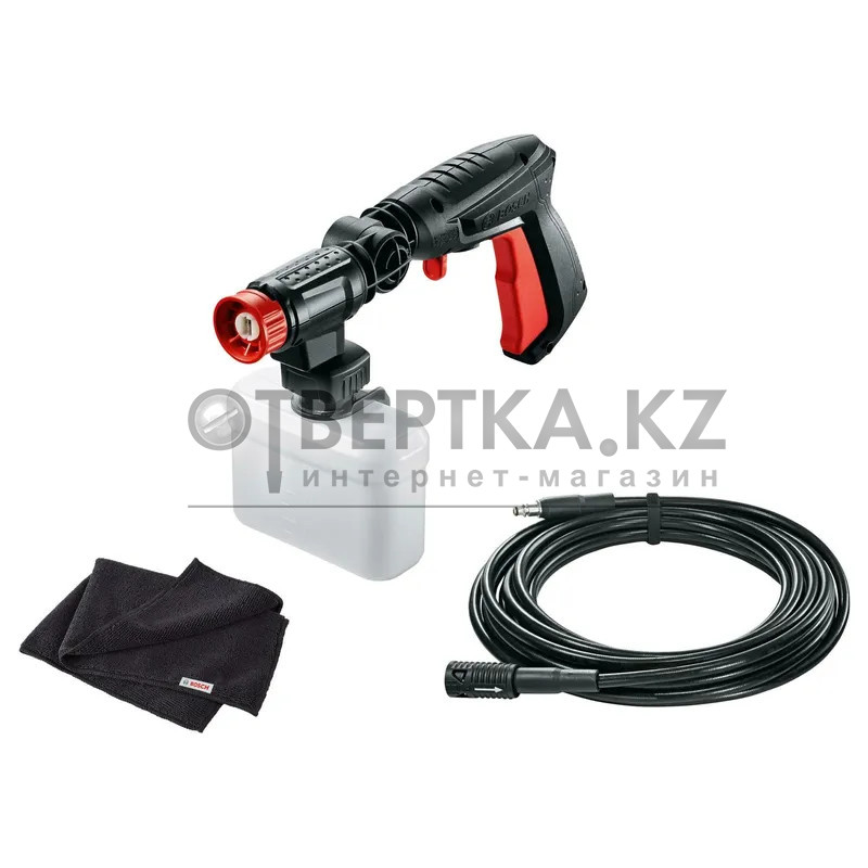 Комплект для мойки BOSCH 360º 3шт. F016800612 - этот универсальный инструмент, позволяющий вам экономить время, поставляется с распылителем на 360°, который можно направлять одной рукой или вращающейся насадкой для легкого смывания грязи струей воды или бережной очистки уличной мебели и труднодоступных мест, таких как высокие окна или днище автомобиля. Присоедините 6-метровый удлинительный шланг для удобного использования на расстоянии, при этом инструмент остается подключенным к розеткам и источнику воды. В этот комплект для динамической очистки также входит тканевая салфетка из микрофибры с высокой впитывающей способностью, которая полирует царапины и придает блеск мотоциклам и автомобилям. Набор совместим с EasyAquatak, UniversalAquatak, AQT 33-10, AQT 33-11, AQT 35-12, AQT 37-13, AQT 40-13, AQT 42-13.