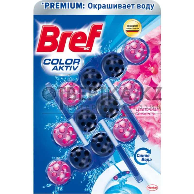 Благодаря силе Bref Цветная вода Вы получаете чистоту и свежесть даже между смываниями! Действительно, с каждым смывом этот туалетный блок с четырьмя шариками образует очищающую пену, защищает от известкового налета, обеспечивает свежесть и гигиеническую чистоту. Также шарики окрашивают воду в туалете в голубой, фиолетовый или аквамариновый цвет. Таким образом, оставаясь в воде, активные компоненты туалетного блока продолжают действовать даже между смываниями!