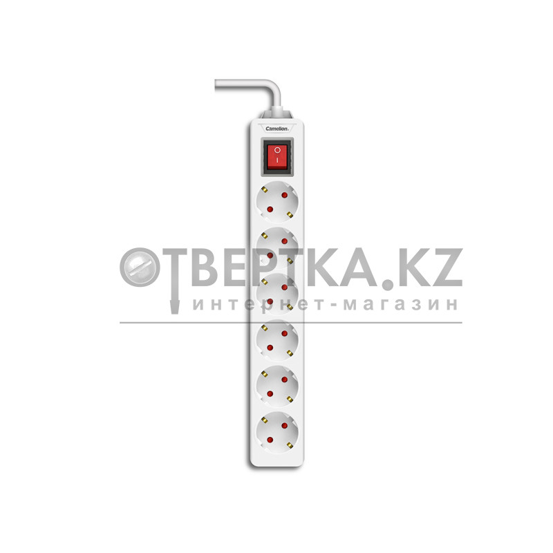 Удлинитель Camelion CMS-116-2M 2м. 220в. (Удлинитель, Camelion, CMS-116-2M, 10A/250V, 6 розеток, 2 метра, 220-250В, 10А, картонная коробка, белый)