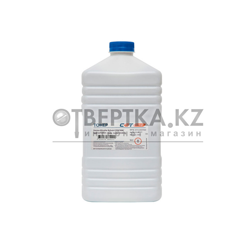 Тонер CET C258 (CET111055Y500) (Тонер, CET, CET111055Y500, Чёрный, CE28-Y (CPT), TN-324Y/227Y, Для картриджей KONICA MINOLTA Bizhub C258/308/368/227i/257i, 500г/бут, Япония.)
