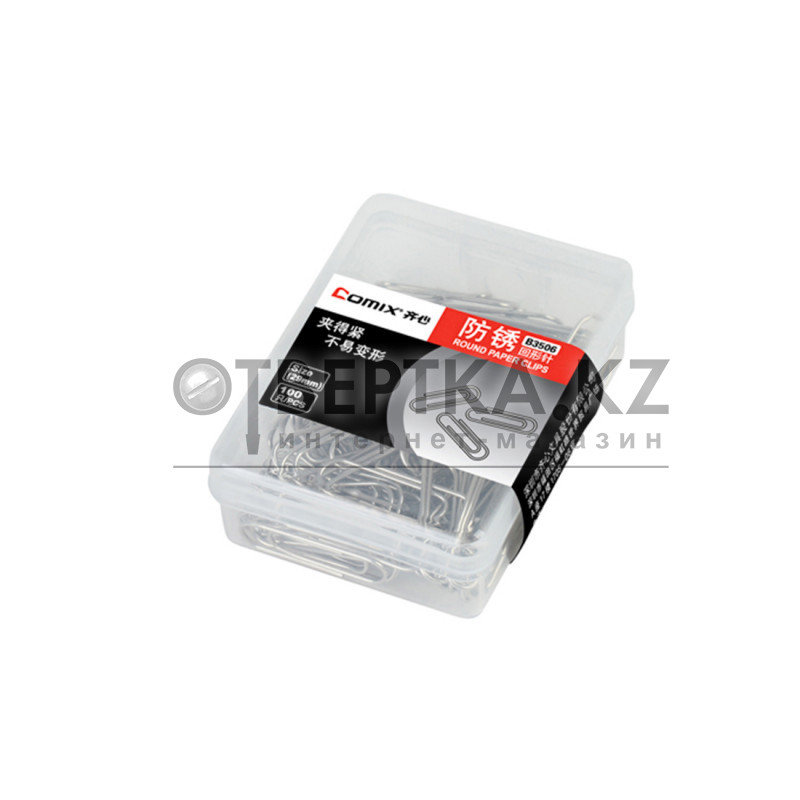 Скрепки металлические никелированные Comix B3506, 29 мм., (пласт. коробка 100 скрепок) (Скрепки канцелярские, Comix, B3506, 29 мм., металлические, никелированные, 85*55*24.8 мм., пласт. коробка 100 скрепок)