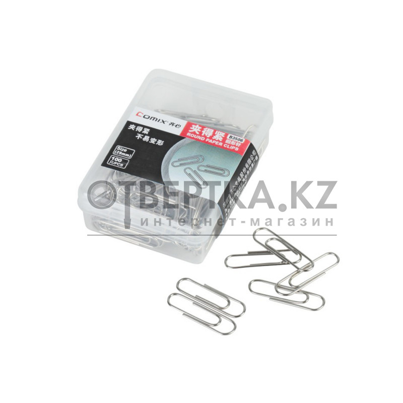Скрепки металлические никелированные Comix B3506, 29 мм., (пласт. коробка 100 скрепок)