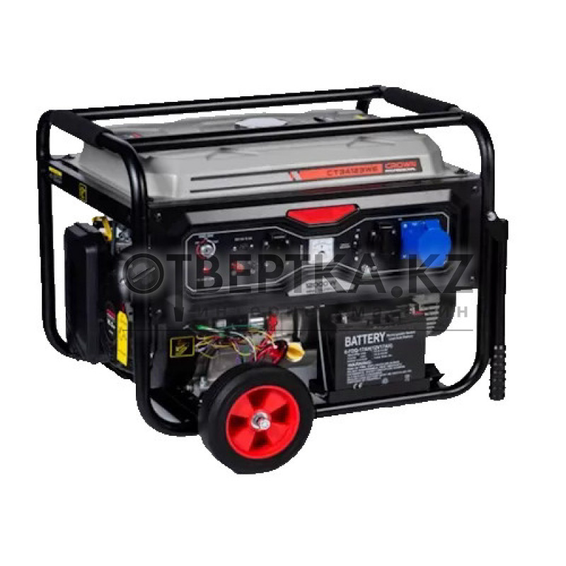 Генератор бензиновый Crown CT34123WE (8,3 кВт) — надёжный источник автономного питания для дома, бизнеса и стройки Этот стойкий бензиновый генератор справится с максимальной нагрузкой до 8,3 кВт и номинальной мощностью 8 кВт. Оснащён двойным стартером (ручной и электрический), доступным рядом розеток (220 В на 16 А, 220 В на 32 А и 12 В), вольтметром и защитой от перегрузки. Надёжный помощник при отключении электричества или в полевых условиях.