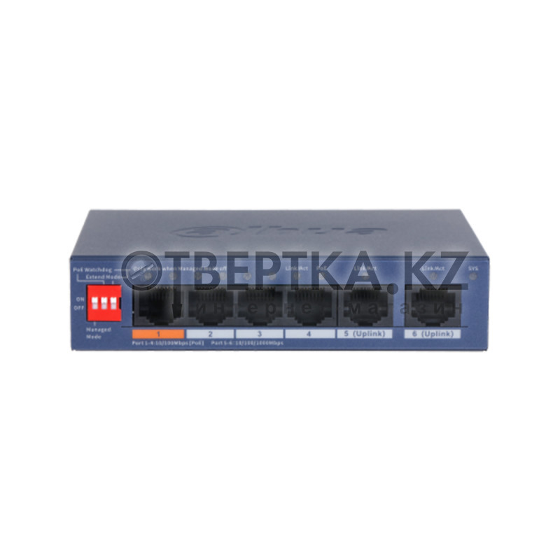 Коммутатор Dahua DH-CS4006-4ET2GT-60 (6-портовый, управляемый, L2, PoE/PoE+/Hi-PoE (60 Вт), 4×10/100 PoE + 2×10/100/1000 uplink, без SFP, настольный)