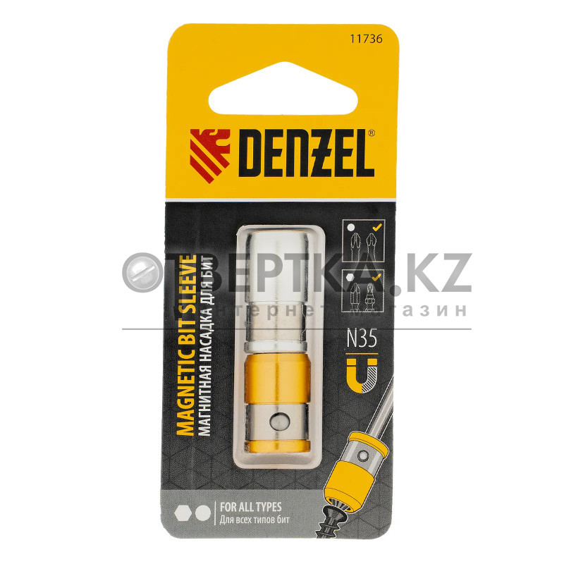 Магнитные насадки для бит Denzel 11736 подходят для работы со всеми типами бит. Диаметр насадки для круглых бит составляет 6,35 мм, для шестигранных — 7,3 мм, длина — 25,6 и 20,7 мм соответственно. Магниты типа N35 позволяют быстро установить и надежно зафиксировать крепеж. Насадки упрощают работу с резьбовым крепежом при помощи ручного и электрического инструмента, совместимого с хвостовиками 1/4″.