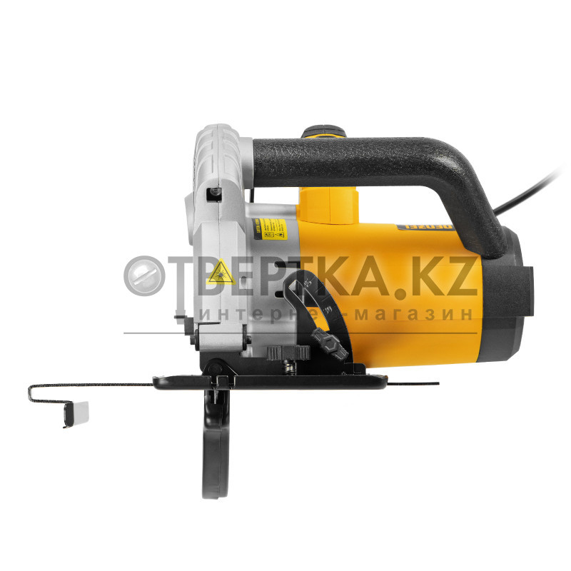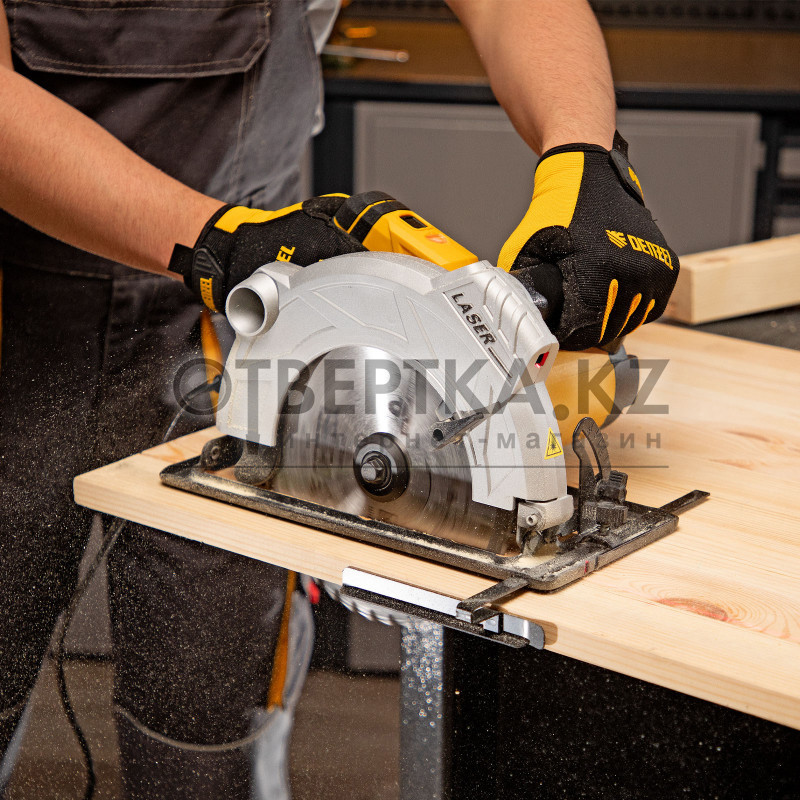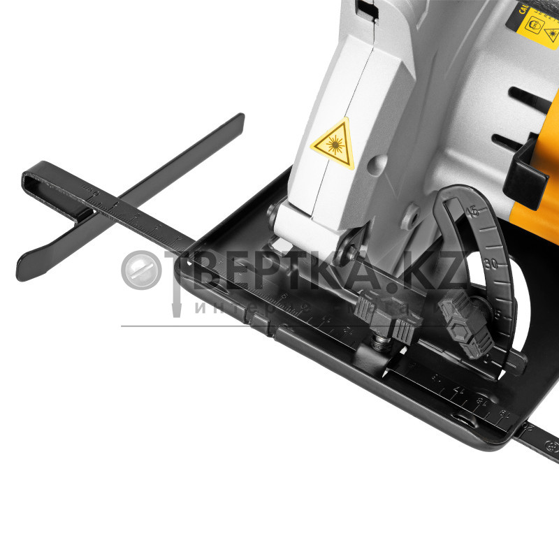 - Высокая точность — лазерный указатель, показывающий линию предстоящего среза, и стальная параллельная направляющая помогают осуществлять ровные прямые пропилы без дополнительной разметки.