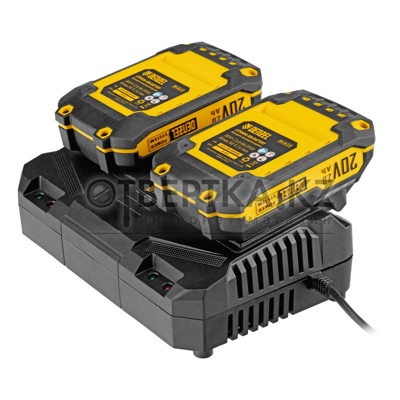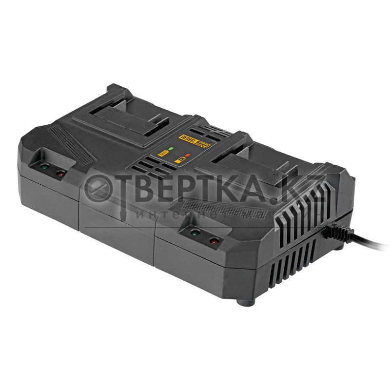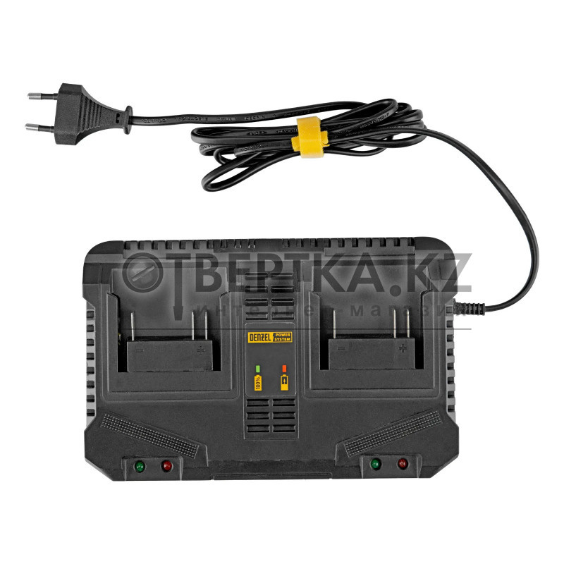 Двухпортовое зарядное устройство Denzel BCH-20-4.0x2 28458 предназначено для одновременной зарядки двух аккумуляторов единой платформы Denzel Power System 20 V. Обеспечивает ток заряда 4 A, совместимо с аккумуляторами Denzel 28442, 28444 и 28446.