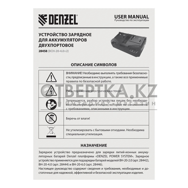 Основные характеристики Denzel BCH-20-4.0x2 28458: