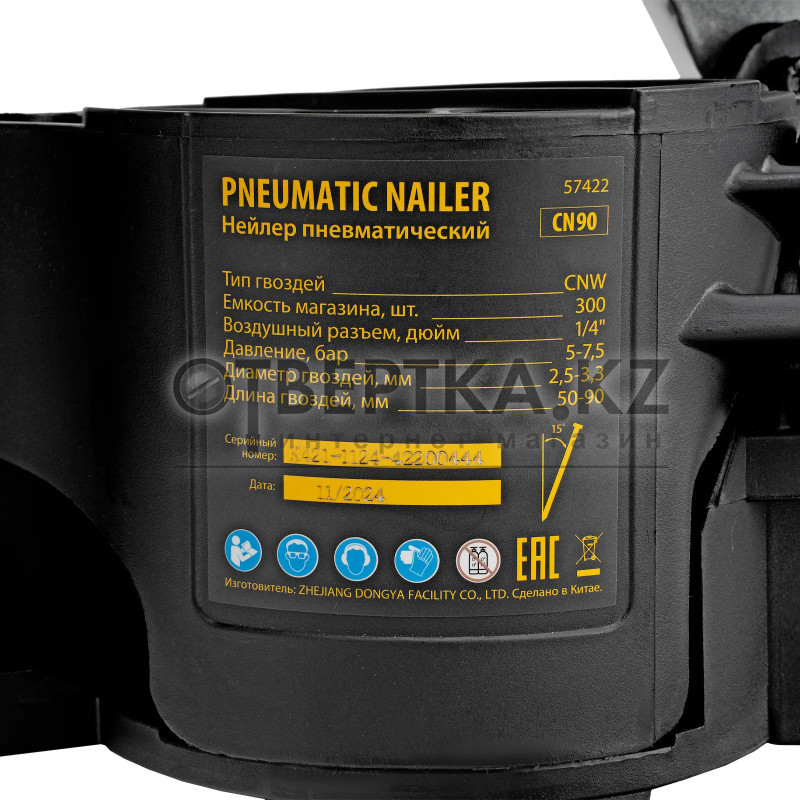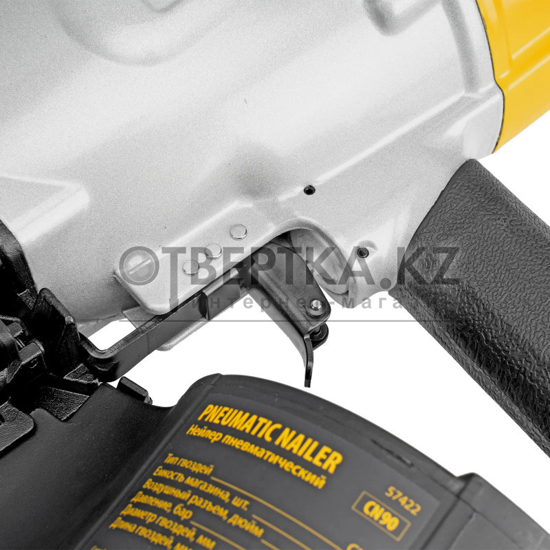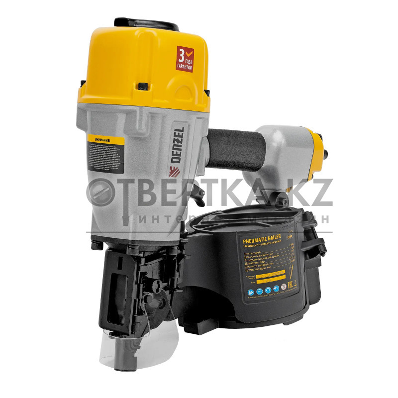 Пневматический нейлер Denzel CN90 57422 совместим с барабанными гвоздями типа CNW длиной 50-90 мм и предназначен для проведения строительно-ремонтных работ, а также производства мебели, паллет и других изделий из дерева, таких как тара и упаковка. Максимальное рабочее давление составляет 7,5 бар, что обеспечивает высокую скорость работы и позволяет быстро и эффективно решать поставленные задачи.