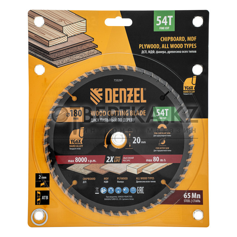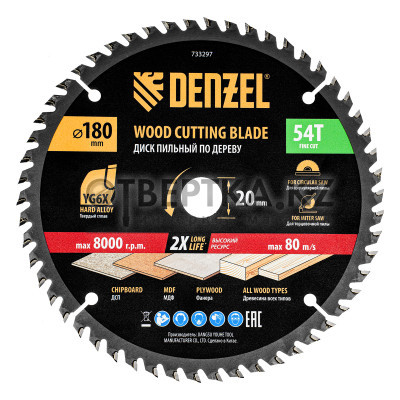 Пильный диск Denzel 733297 диаметром 180 x 20 мм, с 54 зубьями, предназначен для точного продольного и поперечного распила твердой и мягкой древесины, фанеры, МДФ, ДСП. 54 зуба типа ATB с режущими пластинами оптимальной геометрии обеспечивают чистый рез. Режущие пластины из твердого сплава YG6X сохраняют рабочие свойства при интенсивном использовании. Диск устанавливается на циркулярную, торцовочную пилу или на распиловочный станок. В комплект поставки входит переходное кольцо с 20 на 16 мм, что позволяет изменить посадочный размер и расширяет возможности использования диска.