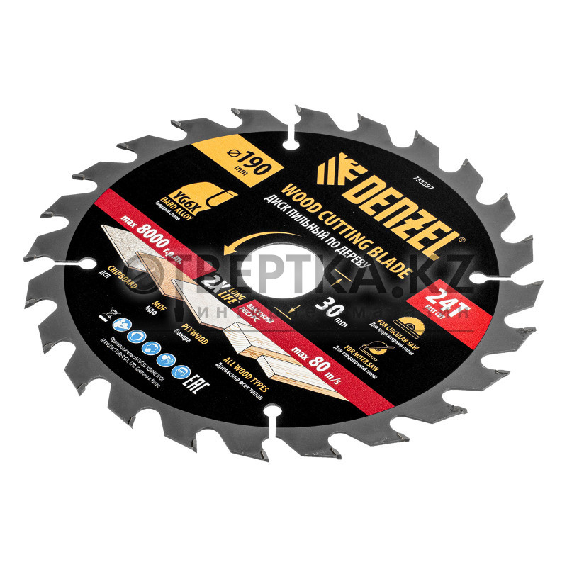 Пильный диск Denzel 733397 диаметром 190 x 30 мм, с 24 зубьями, предназначен для продольного и поперечного распила твердой и мягкой древесины, фанеры, МДФ, ДСП. 24 зуба типа ATB с режущими пластинами оптимальной геометрии обеспечивают быстрый рез. Режущие пластины из твердого сплава YG6X сохраняют рабочие свойства при интенсивном использовании. Диск устанавливается на циркулярную, торцовочную пилу или на распиловочный станок. В комплект поставки входит переходное кольцо с 30 на 20 мм, что позволяет изменить посадочный размер и расширяет возможности использования диска.