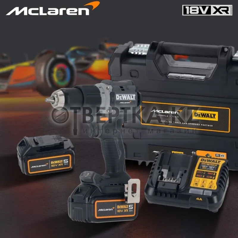 Аккумуляторная ударная дрель-шуруповерт DeWALT McLaren DCD85MP2T-QW - линейка DEWALT x McLaren F1 Team – результат общего стремления к производительности. Наша новейшая и самая мощная бесщёточная двухскоростная ударная дрель-шуруповерт с крутящим моментом до 90 Нм в компактном корпусе диаметром 177 мм разработана для обеспечения максимальной производительности при самых сложных работах. 2 скорости и 14 настроек крутящего момента обеспечивают полный контроль над сверлением и завинчиванием, а система предотвращения вращения обнаруживает застревание и отключает инструмент, защищая вас. Улучшенный поворотный светодиодный индикатор, расположенный на основании, обеспечивает лучшую видимость в темноте и ограниченном пространстве.