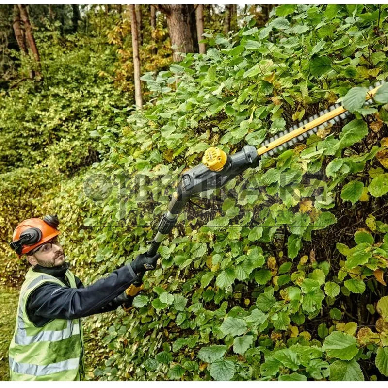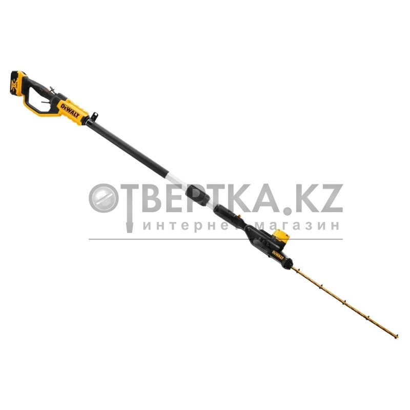 Аккумуляторный кусторез-высоторез DeWALT DCMPH566P1-QW - профессиональный (может работать в режиме повышенной нагрузки и без остановки продолжительное время) аккумуляторный кусторез для подрезки живых изгородей и декоративных кустарников на высоте от 1.8 до 3.35 метров. Кусторез поможет придать кустарнику необходимую форму и сделать его украшением территории. Закаленное стальное лезвие двойного действия длинной 55 см, выполненное методом лазерной вырезки, легко подрежет ветки толщиной до 25 мм. Возможность фиксации ножа в 7 положениях в диапазоне 180 градусов.