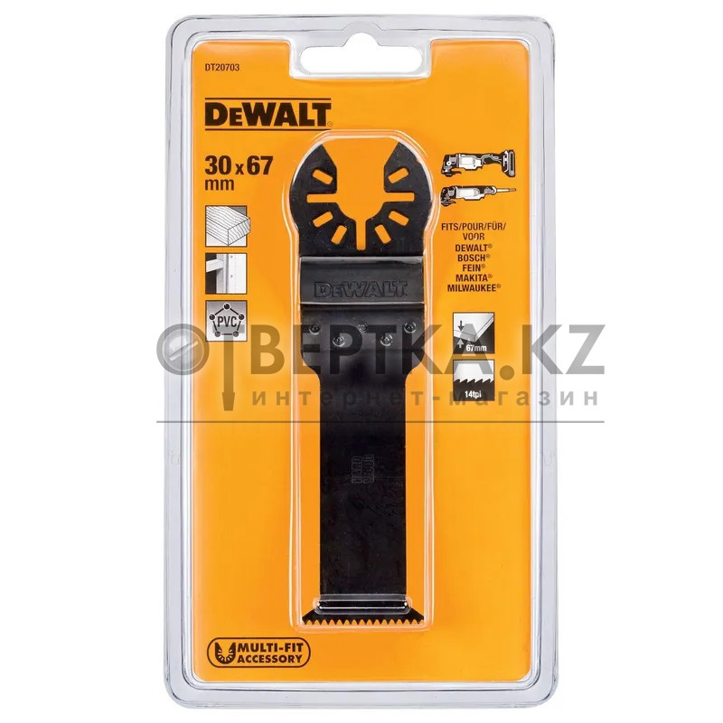 Насадка для мультитул пилка DeWALT 67х30мм DT20703-QZ - используется в качестве насадки для многофункционального инструмента. Оно изготовлено из высокоуглеродистой стали и хорошо подходит для быстрого реза по дереву.