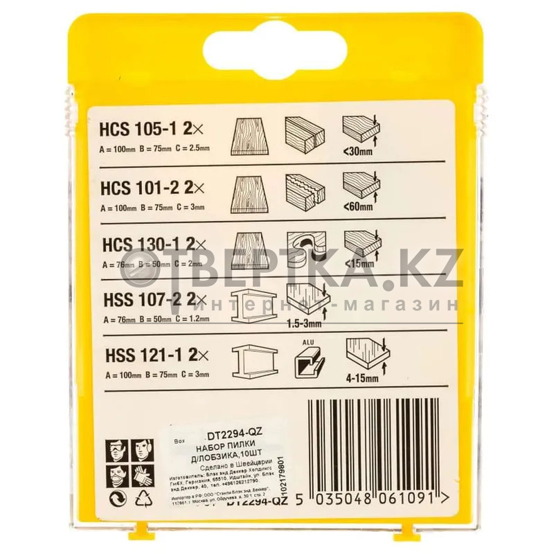 Набор биметаллических полотен для электролобзиков по дереву DeWALT 10шт. DT2294-QZ - используется совместно с лобзиками для работ по дереву и металлу. В данный набор входят различные, самые популярные модели. Пилки находятся в пластиковой упаковке многократного использования.